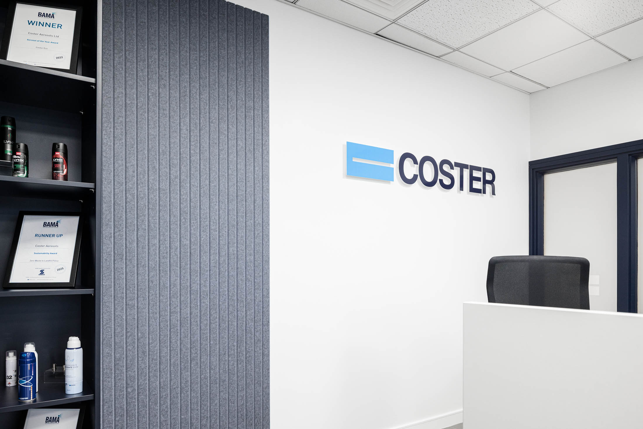 The refreshed reception now provides a clean, professional and contemporary welcome to visitors arriving at Coster’s office.